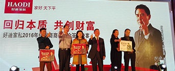 2016年7月-4日在風景宜人新都保利皇冠假日酒店舉行全國VIP經銷商商務年會,本次年會主題“領航 智造未來”。參會經銷商達600餘人,公司新推北美風情得到廣大經銷商認可,積極踴躍訂貨。同時公司參加第十屆成都國際家具展,公司展出炫彩時代、塞納情緣,楠木風情得到全國經銷商認可,“7A終端盈利係統”得到同行極大認可,吸引全國新客戶加盟,願與公司一起發展,本次展會取得預期效果。